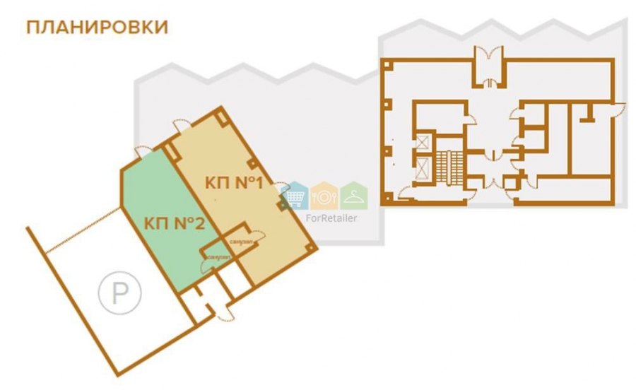 Продается помещение свободного назначения в 1 корпусе (на плане выделено зеленым цветом).