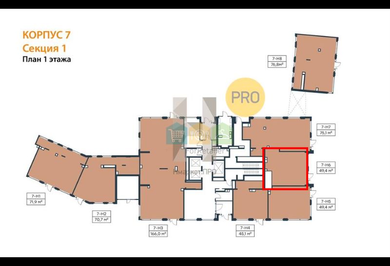 Общая площадь – 49,4 кв.м. Помещение расположено на 1 этаже 29-этажного дома. Отдельная входная группа с фасада дома. Высота потолков 2,85 м. Электрическая мощность 10 кВт. Все городские инженерные коммуникации. Крупный, густонаселенный престижный жилой район. Большой пешеходный и транспортный трафик. Отличная видимость объекта. Любое свободное использование.