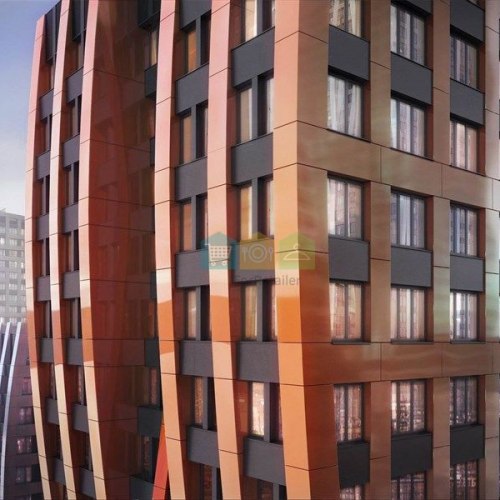 Отделка фасадов высотных корпусов выполнена из алюминиевых кассет и фибролиста. Это современные материалы, которые защищают от влаги, держат тепло и не допускают коррозии.