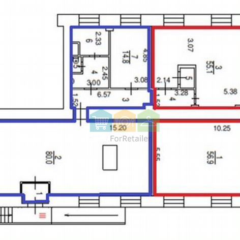 Возможно разделение на два блока с отдельными входными группами Левая часть — 120,7 кв. М. Правая часть — 120,8 кв. М.