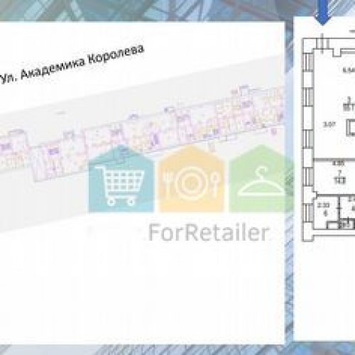 Помещение расположено на 1 этаже жилого дома. Два отдельных входа с улицы и один с торца здания. Открытая планировка. Высота потолков 3 метра. Помещение с отделкой. В настоящее время используется по аптеку сети «Ригла» (возможно расторжение договора аренды с уведомлением за 1 месяц). Центральные коммуникации. Парковка возле дома, рядом остановка общественного транспорта. Местоположение: Станция метро Вднх– 490 метров, Станция метро Улица Академика Королёва — 400 метров Ттк –3,8 км Садовое кольцо — 6 км.