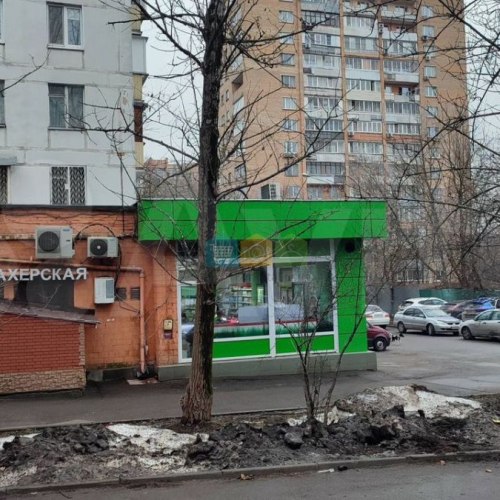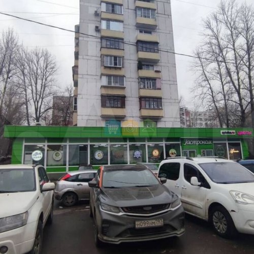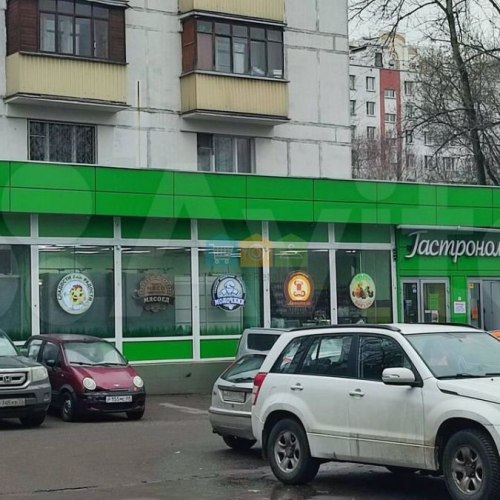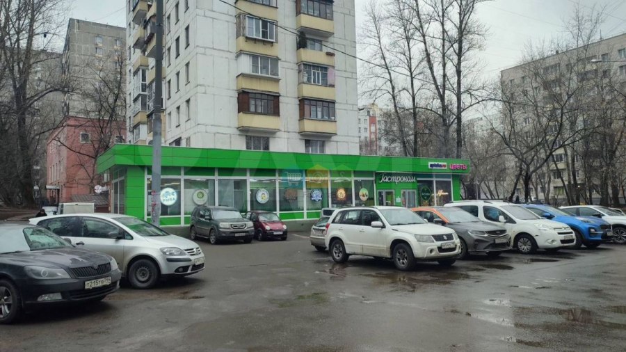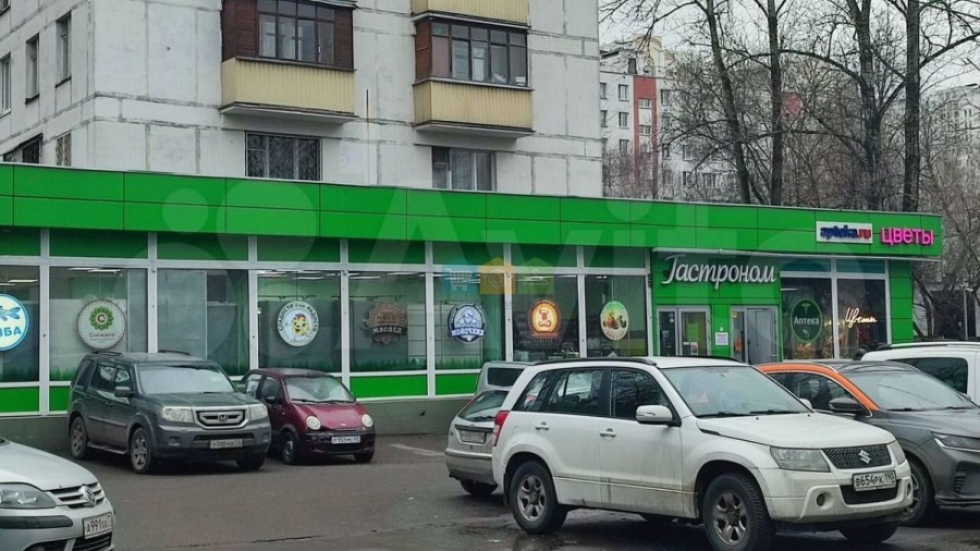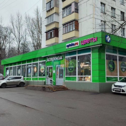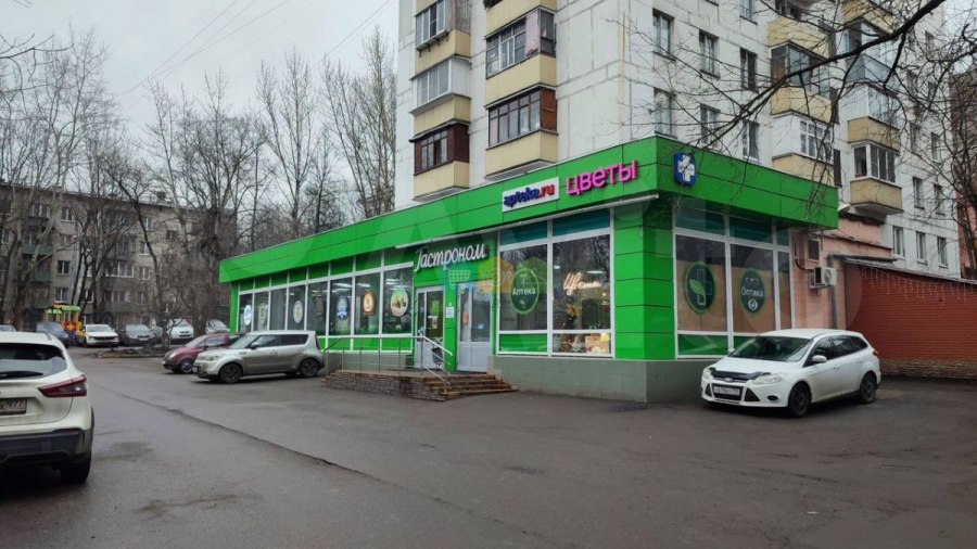 На первом этаже расположены помещения, арендованные под продуктовые магазины, цветочный магазин и аптеку.