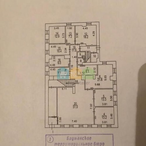 В здании 3 этажа: 1, 2 и цокольный этаж. Кабинетная планировка. 2 входа с улицы Б. Серпуховская и со двора.